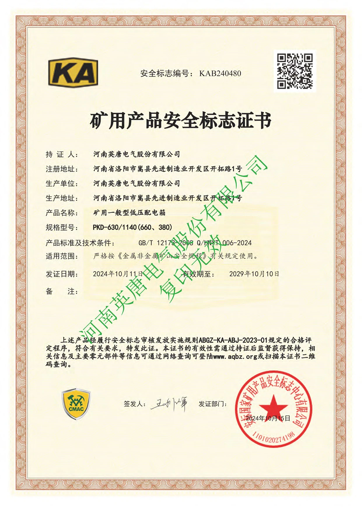河南省洛阳市嵩县先 进制造业开发区开拓路1号