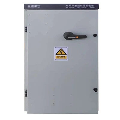 PKD矿用一般型低压配电箱(以下简称配电箱)符合国家标准GB/T 12173-2008矿业一般型电气设备。主要用于非煤矿山井下动力控制系统,作为变电所低压侧的进线,馈线,联络,照明电源。配电箱外壳采用冷轧钢板制成,能承受国家标准和本产品技术条件规定的冲击强度和强度试验。表面涂1321#耐弧漆。电缆线采用电缆沟进线,安装完成后用防爆胶泥密封,配电箱为固定式,安装时不用的进线口有防爆泥胶堵死。